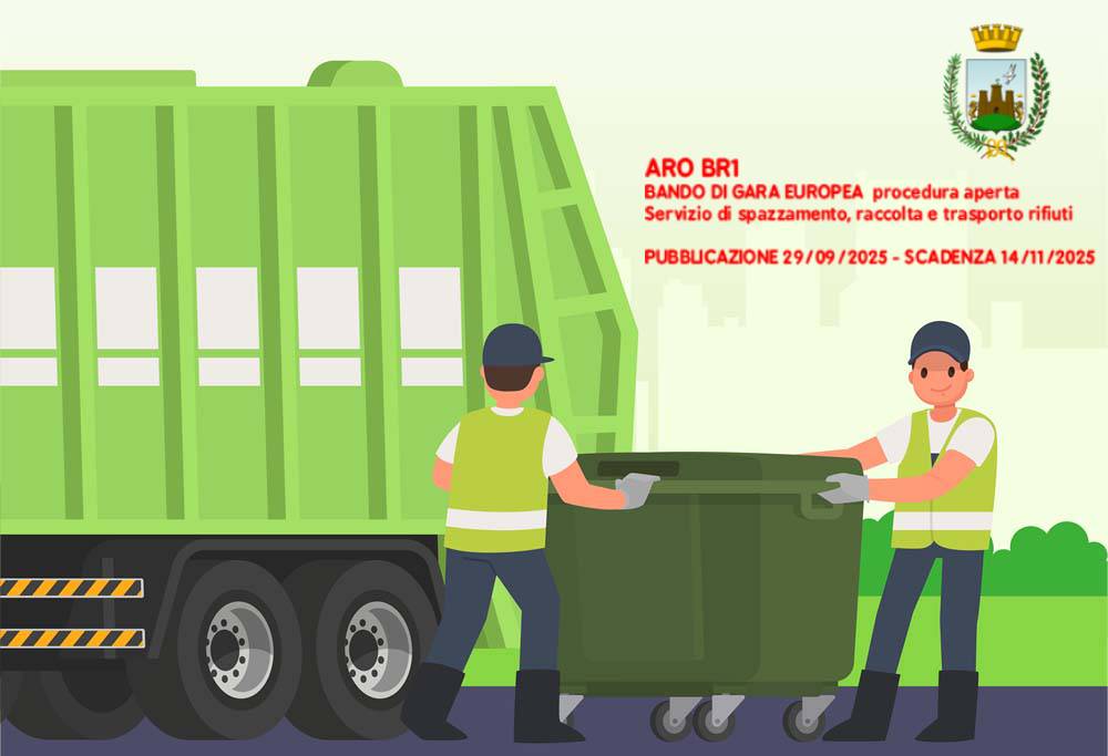 Si rende noto alla cittadinanza e a tutti gli operatori economici interessati che l'AGER (Agenzia Territoriale della Regione Puglia per il servizio di gestione dei rifiuti), in qualità di Stazione Appaltante Qualificata per conto dell'ARO BR 1 Ovest, ha pubblicato il bando di gara a procedura aperta per l'affidamento del Servizio di spazzamento, raccolta e trasporto dei rifiuti urbani.