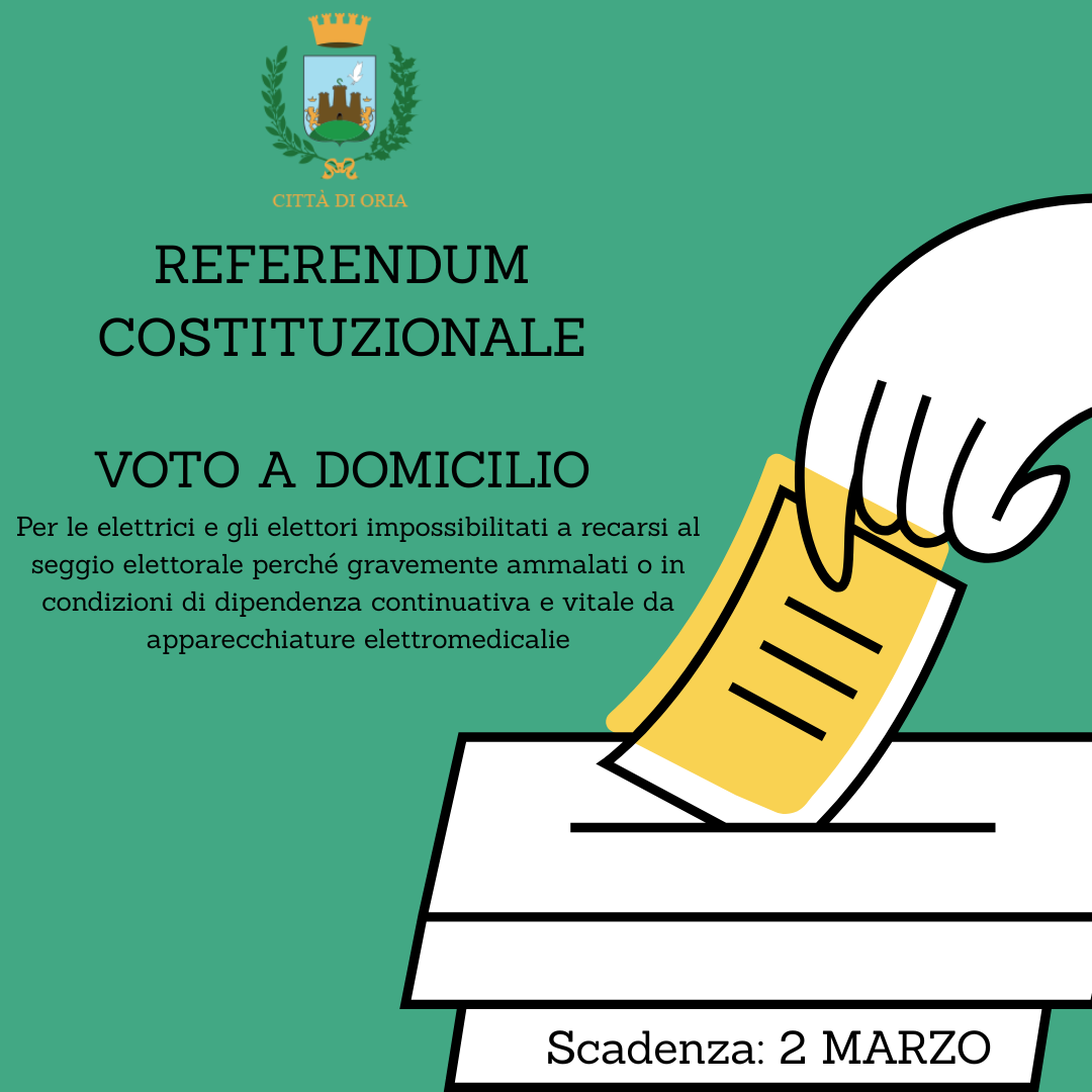 Informazioni inerenti il voto a domicilio in occasione delle consultazioni Referendarie in programma il 22 e 23 marzo 2026.